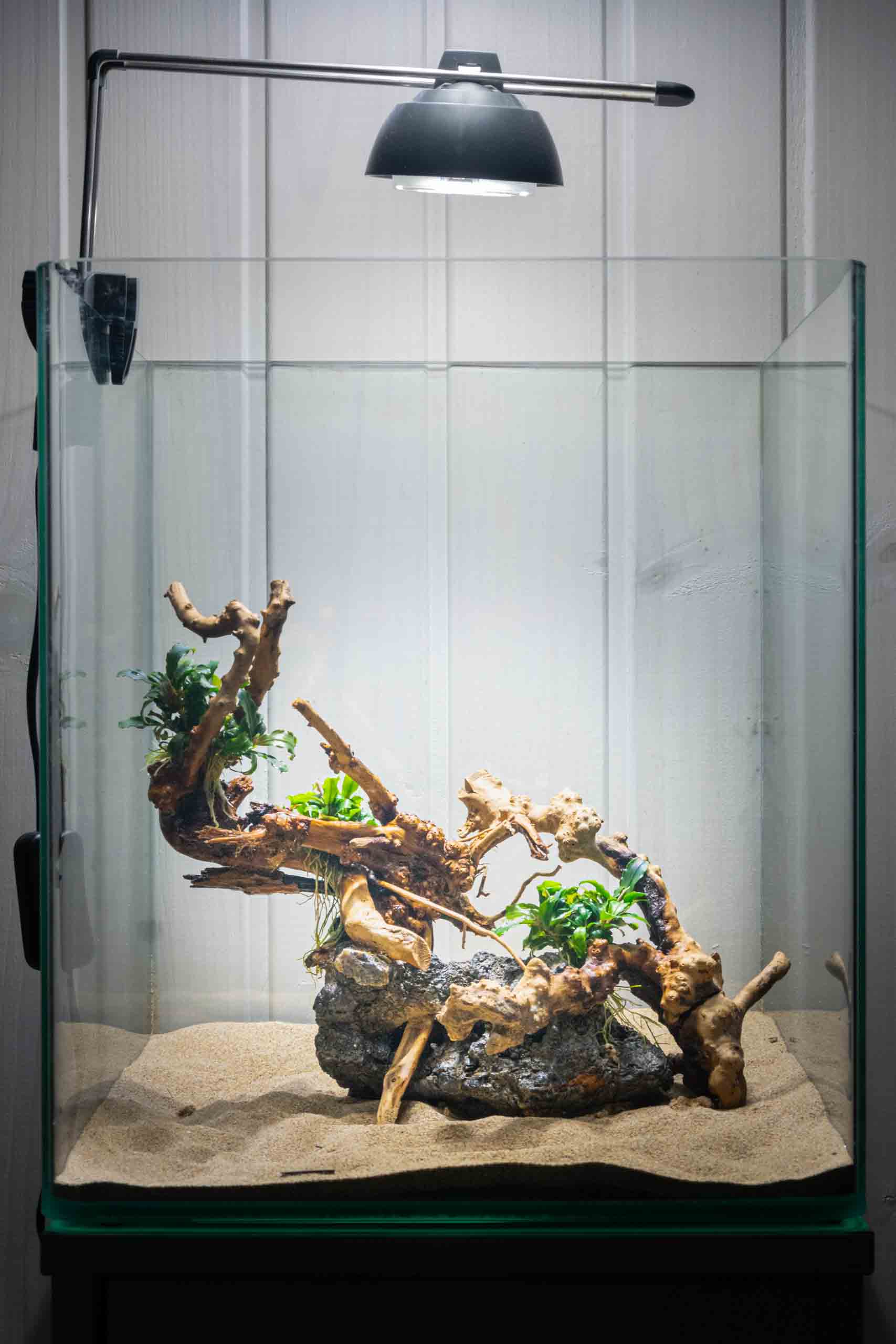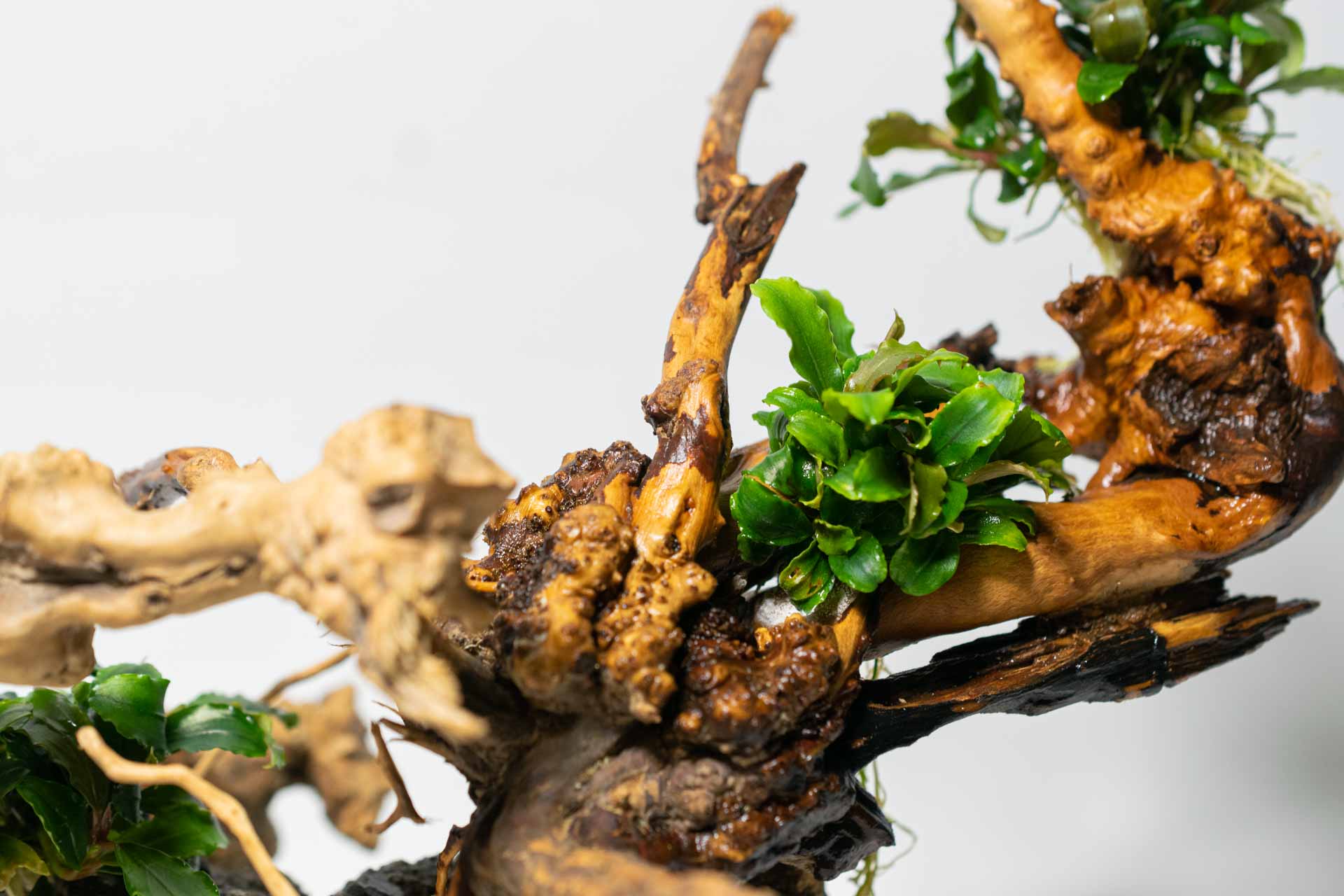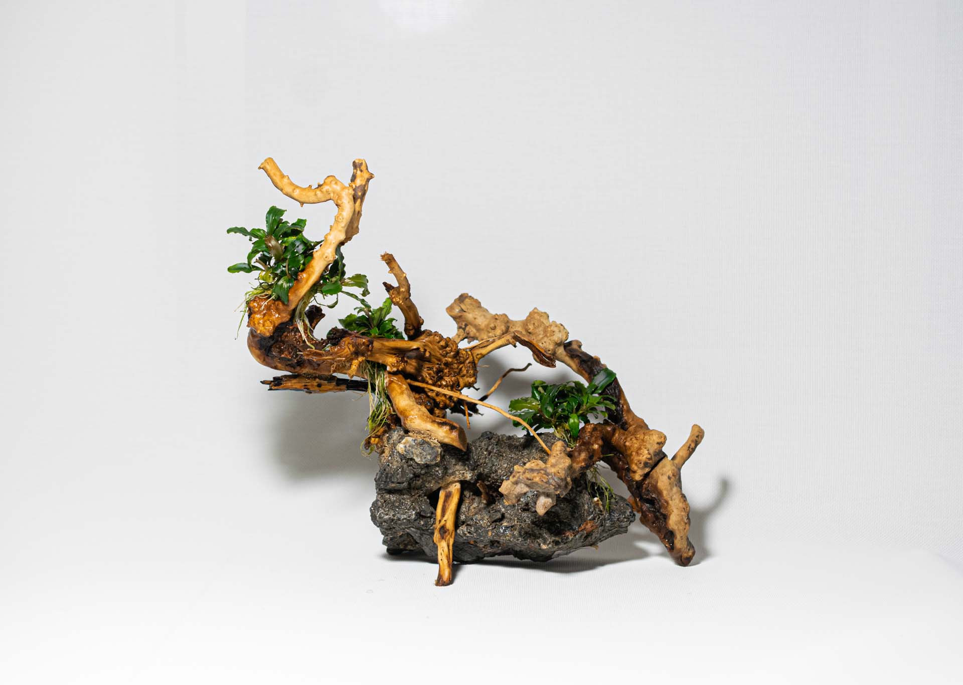 As peças de design AQUASCAPE são criadas usando plantas. Na verdade, “aquascape” ou “aquapaisagismo” são palavras com as quais podemos nos referir a qualquer projeto paisagístico em aquários, mas em nossa loja queríamos chamar isso apenas dos projetos que têm plantas. A razão é que as origens do aquapaisagismo moderno estavam intimamente ligadas às plantas, antes do surgimento das tendências de “hardscaping”.