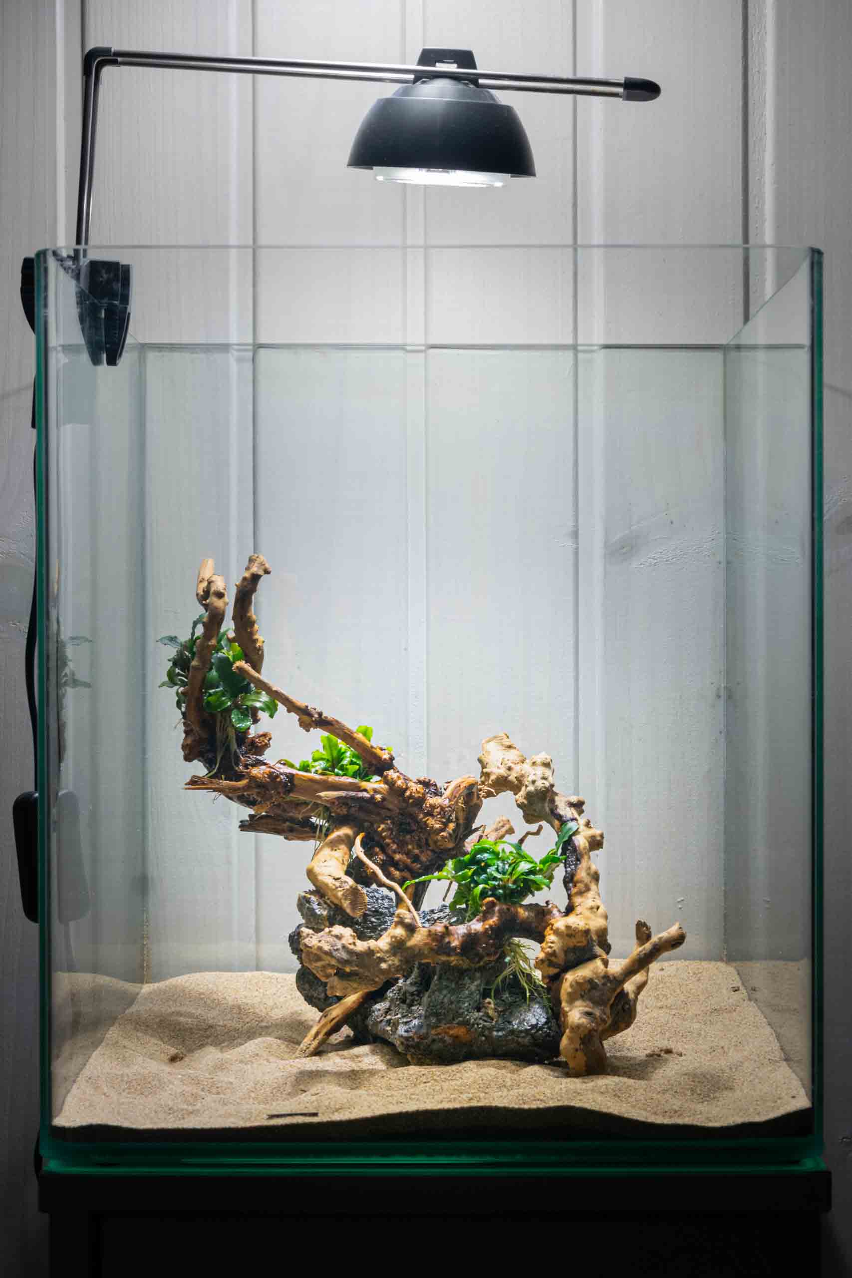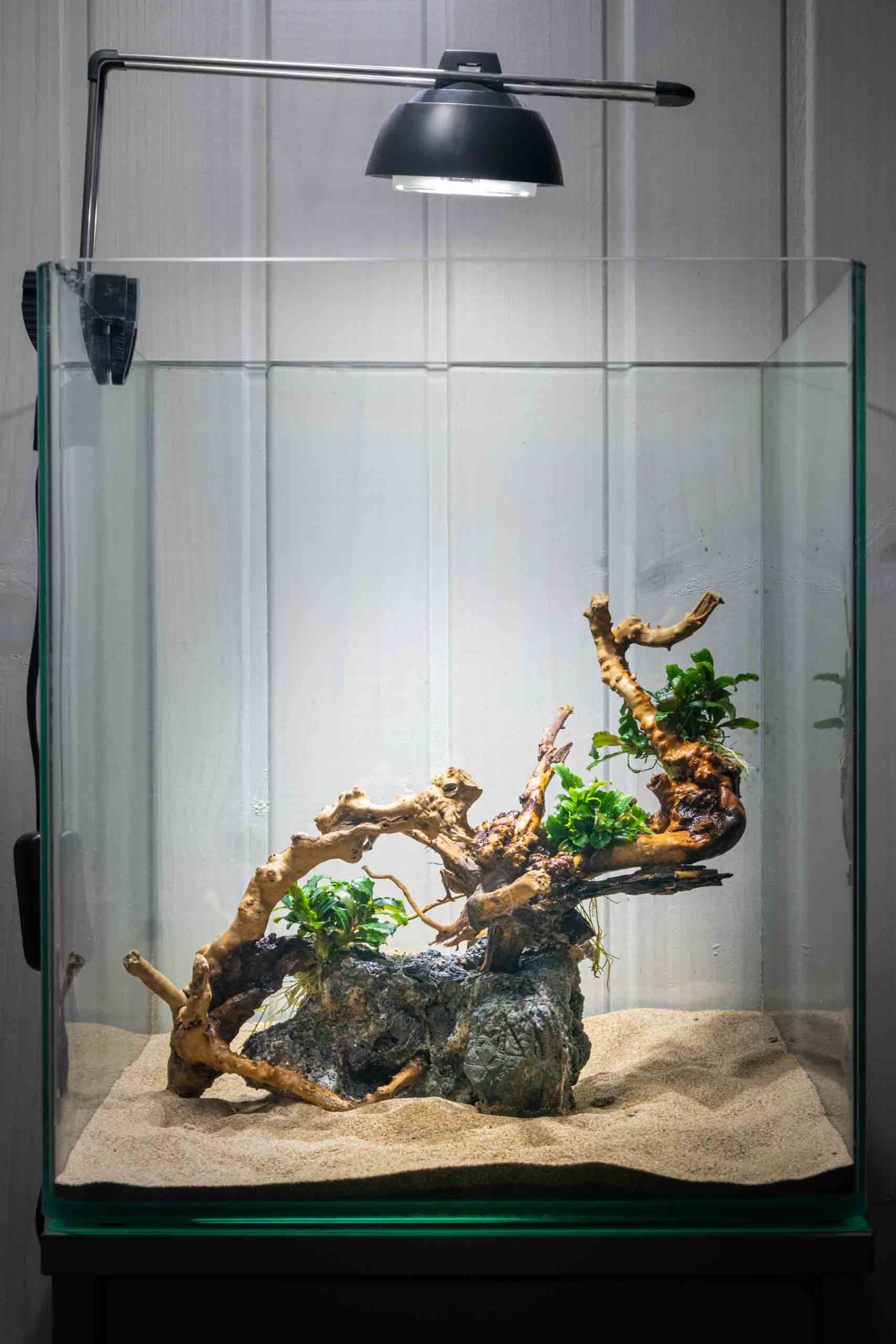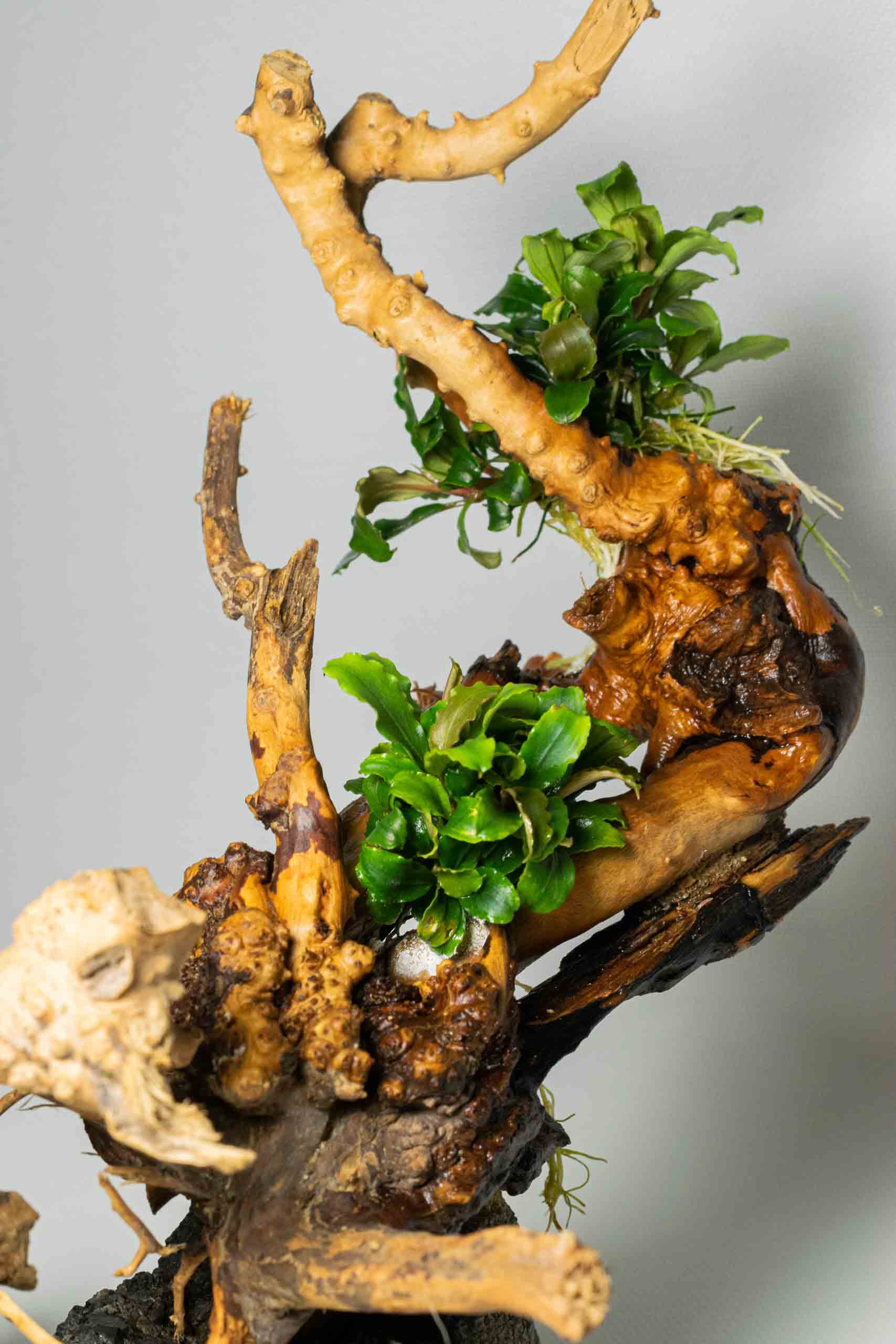 As peças de design AQUASCAPE são criadas usando plantas. Na verdade, “aquascape” ou “aquapaisagismo” são palavras com as quais podemos nos referir a qualquer projeto paisagístico em aquários, mas em nossa loja queríamos chamar isso apenas dos projetos que têm plantas. A razão é que as origens do aquapaisagismo moderno estavam intimamente ligadas às plantas, antes do surgimento das tendências de “hardscaping”.